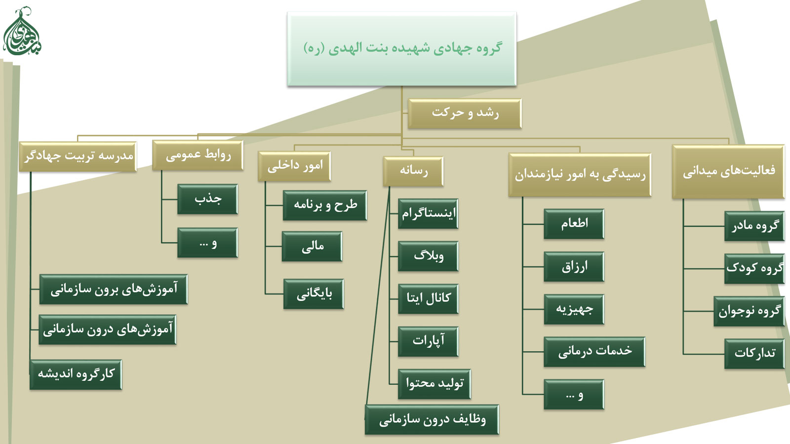نمودار سازمانی گروه جهادی بنت الهدی - برای نمایش بهتر، بر روی تصویر کلیک کنید.